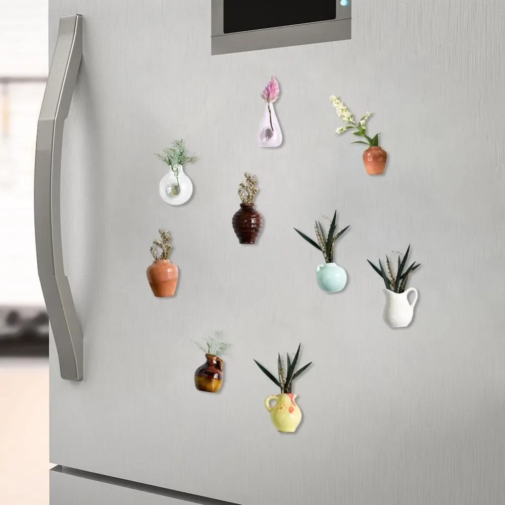 Cute Plant Vase Fridge Magnets, Diy Mini Ceramic Vase Fridge Magnets, Simulated Porcelain Bonsai Fridge Stickers